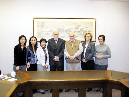 本报记者到加拿大刑法改革与刑事政策国际中心访问时,与该中心董事皮特·伯恩斯大律师(左四)、代理执行总监凯瑟琳·麦克当娜女士(右二)和量刑与矫正项目主任罗伯特·布朗先生(右三)等合影。