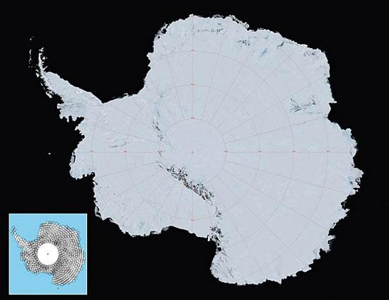 这些图片中出现的唯一裂口是位于南极的一个环洞形区域。在这张新地图中,就连半个篮球场大小的地区也是清晰可见,拥有如此的清晰程度,它堪称有史以来最为详细的南极洲地图。美国宇航局水圈与生物圈科学实验室(位于马里兰州格林贝尔特的戈达德航天飞行中心)首席科学家罗伯特-宾德沙德尔表示:“这种差别就好像是观看高清晰彩色电视机与黑白电视机之间的差别。这些图片不仅为我们提供了一个快照,它们展现的是南极洲如何变化的一个延时历史记录,我们能够依此继续观察这些渐渐显露出来的变化。”