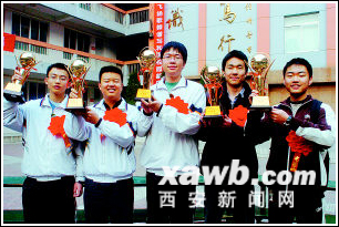 据悉,此次在宁波举行的这次全国中学生物理竞赛决赛中,陕西省中学生物理竞赛委员会选拔组建的省代表队由谢东霖(交大附中)、李俊儒(交大附中)、焦剑涛(西工大附中)、张励勋(西工大附中)、刘景博(交大附中)五名选手组成。参赛队员们不负众望,取得了骄人的成绩,其中谢东霖(理论成绩第3名,总分第10名)和李俊儒(总分第30名)双双荣获金牌并入选国家集训队,刘景博(总分39名)、焦剑涛(总分48名)和张励勋(总分86名)分别荣获银牌。随后,他们5人被前来挑选尖子生的北大(1名)清华(4名)提前录取。据指导老师说,他们还获得了优先挑选学习专业的特权。