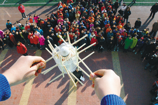 沈阳晚报小记者“鸡蛋撞地球”大赛首场预赛昨日在泰山路小学举行,200人多种装置吸引全校师生。