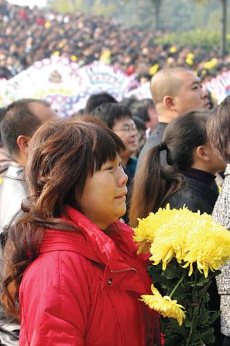 9时30分左右,整个殡仪馆人山人海,殡仪馆的广场以及广场边的山坡上都挤满了人,一些进不来的市民在殡仪馆门口自觉地排好队。