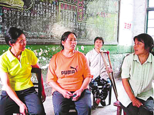 冯光容(右)与邻居摆谈