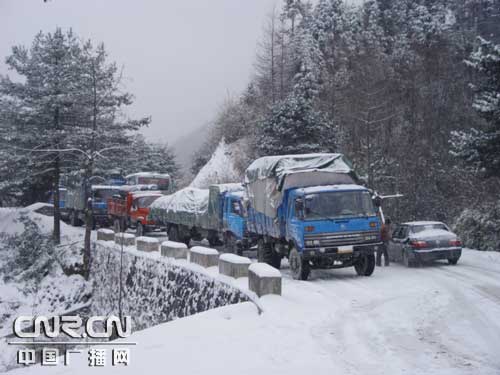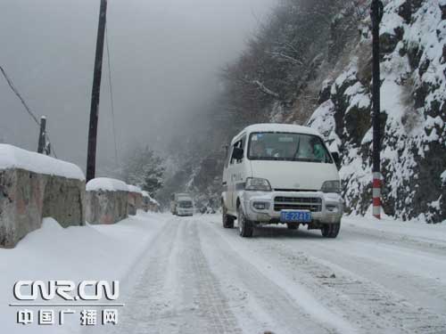 突降暴雪致325湖北省道独岭路段交通受阻