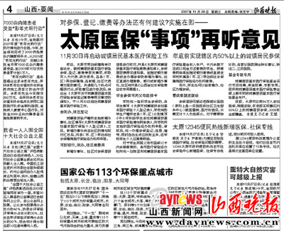 本报11月28日4版,《太原医保“事项”再听意见》