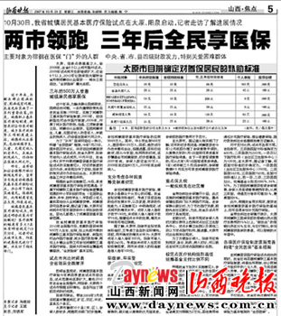 本报10月31日5版,《两市领跑三年后全民享医保》