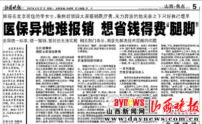 本报8月27日5版,《医保异地难报销想省钱得费“腿脚”》