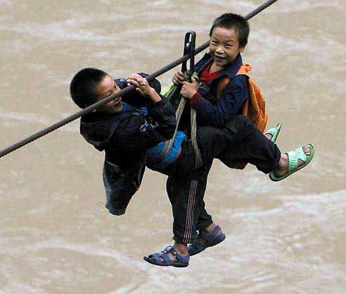 一个滑轮、一根麻绳、一把青草、7秒钟飞过近200米的怒江江面……为了求学,云南福贡县马吉乡的很多孩子,天天都需要冒着生命危险,依靠飞索渡江的方式,往返于波涛汹涌的怒江两岸,稍有不慎就有可能葬身怒江。