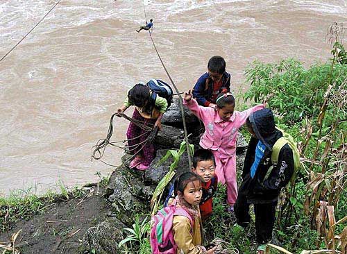核心提示:为了求学,云南福贡县马吉乡的很多孩子,天天都需要冒着生命危险,依靠飞索渡江的方式,往返于波涛汹涌的怒江两岸。怒江傈僳族自治州州长侯新华称,将用三年的时间拿出一大笔钱,彻底地解决学生和老百姓过江难的问题。
