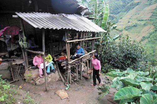 家住学校对岸山坡上,马吉中心小学三年级的余芬前在家复习功课。(图片来自:新京报) (CCTV)