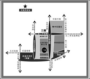 大明宫遗址区保护改造项目在空间形态上将形成“一心两翼三圈六区”的基本格局。一心:大明宫国家遗址公园;两翼:以火车站北广场为轴心,沿陇海线形成东西两个大城市改造板块;三圈:形成未央路、太华路、北二环三个商业圈;六区:规划建设文化旅游区、商贸服务区、商务核心区、改造示范区、中央居住区、集中安置区六个功能区。
