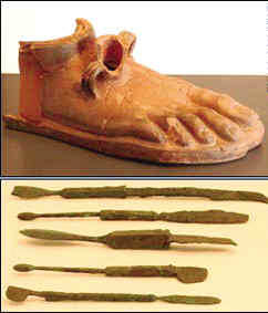 据《星期日电讯报》报道,这个在意大利里米尼法拉利广场下被发现的古罗马诊所建于公元前2世纪,大约在公元260年被毁。1989年,由于一棵大树被连根拔起,诊所与其他遗迹一起重见天日。经过17年发掘,考古学家发现了150多种不同的医疗器械,其中许多器械今天的外科医生们并不陌生,包括解剖刀、刻度尺、药臼、药瓶等。还有一些则非常罕见,比如用来拔箭头的铁镊子、拔牙的钳子和用来开颅骨、取碎片的小凿子。