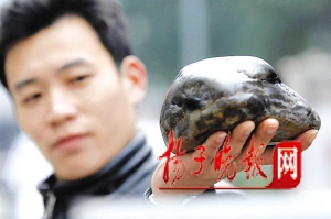 一块鹅卵石酷似蟒蛇头 扬子晚报 《扬子晚报》官方账号 2007.12.1100:29 关注 昨天下午,市民孙先生向记者展示了他收藏的一块酷似蟒蛇头的鹅卵石。记者看到,鹅卵石长30厘米,约四五斤重,呈深褐色。石头尖端酷似蛇嘴,其上颜色较浅的两块好似蛇眼。孙先生家住雨花台区,近日他家门口附近一座山上正在修路,他上山玩时偶然发现了这块酷似蛇头的奇石。 刘佳丽 范晓林 摄