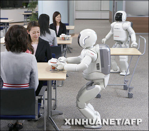 当日,本田公司推出最新版本的“阿西莫”机器人。这些机器人服务员会自动实行分工,提供不间断服务。本田公司打算从12日起在公司总部试用这些机器人。