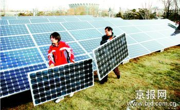 本报讯(通讯员黄秀慧)昨天,本市最大的地面(公园)太阳能独立/并网发电系统的安装已接近尾声。笔者在位于丰台区的北京世界花卉大观园安装现场看到,工人们顶着寒风在完成最后一道太阳能板安装工序。