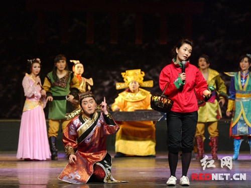 来湘后改了不少戏份,又增加了不少本土元素的《奉旨越狱》尽管近日连夜排练,但首演还是难免出状况。由于麦克风在演出现场频频“罢工”,坚持的演员们也只好扯着嗓子用真声上阵。