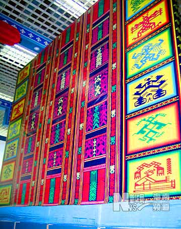 12月15日,富有浓郁海南特色,反映黎族人民传统生活、劳作场景的大型黎锦在2007年中国(海南)国际热带农产品冬季交易会保亭馆亮相。苏婧摄