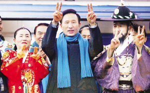 韩国《朝鲜日报》13日公布的民意调查显示,李明博以45.4%的支持率遥遥领先,超过位居第二的郑东泳近30个百分点。