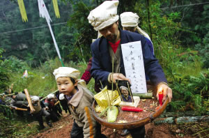 昨日,江津中山古镇,送葬队伍在泥泞的山路上缓慢前行 记者 陈诚 摄