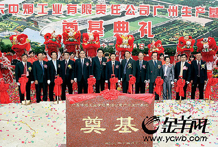 昨日上午,在礼炮和鼓乐声中,广东中烟工业有限责任公司广州生产基地正式奠基。广东省省长黄华华、国家烟草专卖局局长姜成康等多名领导出席奠基仪式,并亲手为基地培土。