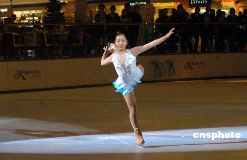 香港花样滑冰代表队运动员小野珠实在授旗仪式后作表演。