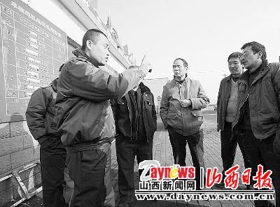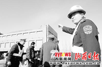 图:12月19日下午2时许,在榆次区峪头超限检测站,站长贾志强正在耐心地给被扣留车辆的司机讲解相关治超规定。
