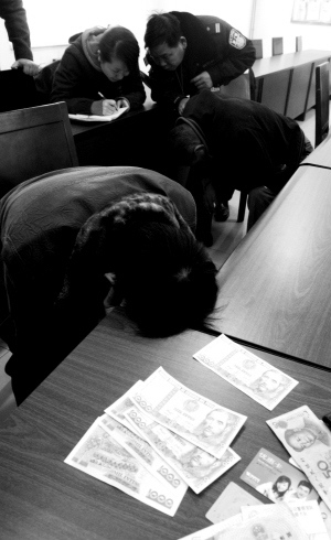俩中年男子又转身从谢轩涛手中强行夺走300元钱,塞到男孩手里,并将一张秘鲁币扔在谢轩涛身上。