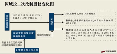 2005年改制时员工持股的深圳市城市建设投资发展公司(以下简称“深城投”),在不到3年时间内,原来的老员工们相继失去股东身份,原来拥有股权的165人中,123人失去了他们的股权,股份集中到少数利益人手中后,在战略重组的名义下落入一个注册资本只有100万元的小公司手中。