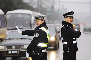 南京特巡警上街指挥交通