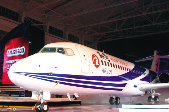 首架ARJ21-700新型支线客机尾段由沈飞研制生产,目前正在生产第四架