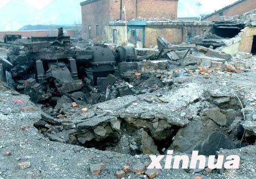 这是七台河东风煤矿被炸塌的出煤口(2005年11月28日摄)。 新华社记者 崔峰