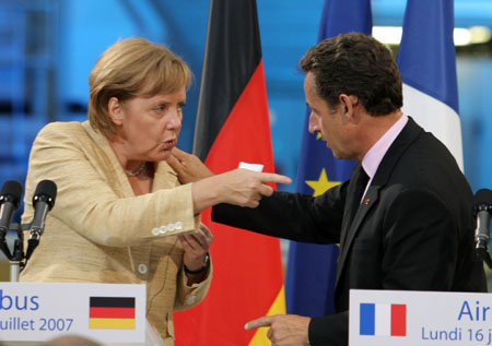 默克尔(左)和萨科齐尽管有争吵,但是在欧盟团结这个大问题上还是走到了一起。