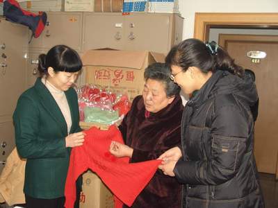 省妇联副主席、省儿童基金会常务副理事长裴世馨及省儿童基金会工作人员接过林秀贞一家人编织的爱心毛衣后,深感毛衣织得漂亮而实用,其中衣领部分设计得尤其巧妙,一根抽绳穿过衣领,两端各缠了一个红线球。林秀贞说:“这个设计有两个功能,一是放松抽绳,孩子的头就可以轻松钻过去;二是等毛衣上身后再拉紧绳子,衣领缩小,孩子就会更暖和。”
