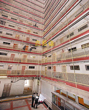 疑不堪情困,啤酒妹自16楼走廊跃下自杀,当场惨死。来源:香港文汇报