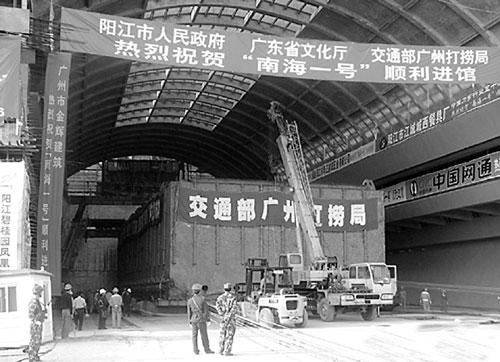 本报综合新华社消息 28日16点30分左右,装载着“南海一号”的沉箱安全抵达广东海上丝绸之路博物馆里的“水晶宫”,历时7个多月的“南海一号”整体打捞工程画上圆满的句号。“南海一号”入住“水晶宫”后,标志着古船的文物发掘工作也将随之展开。