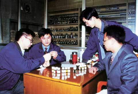 还有配方专家刘东山、理学博士毛友安、分析检测专家杜文……他们的科研征程中,都书写着一篇篇精彩的故事。这一批批专家学者云集湖南中烟,共同筑起了公司的科技发展大厦。据统计,到2007年11月底,湖南中烟技术中心已拥有博士后10人,在站博士后5人,硕士55人,科研人员201人,平均年龄仅35岁。这些专家涵盖化学分析、烟草栽培、烟草工程、工艺研究等20多个专业,形成了一支结构合理、门类齐全、专业配套、实力雄厚的科技创新人才团队,为湖南中烟的品牌扩张和企业的持续发展储备了强大势能。依托这支研发团队,湖南中烟积极开展横向联合,先后与中国军事医学科学院、中科院大连化学物理研究所、郑州烟草研究院、湖南大学、湖南农业大学等科研院所,共同组建“吸烟与健康实验室”、“烟草工艺联合实验室”等6个联合实验室。为了企业的长远发展、湖南中烟的科研专家将目光紧紧锁定在国内国际同行科研的最前沿。