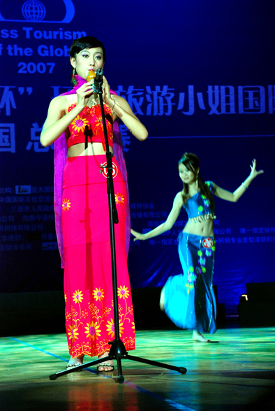 今晚8时,在一曲活力四射的动感舞曲中, 30名参赛佳丽身着抢眼的活力装齐齐登台!2007年的全球最后一场美丽赛事——“07年环球旅游小姐国际大赛中国总决赛暨颁奖晚会”在海口市人大会堂拉开中国小姐冠军争夺战的帷幕。经过两个小时的激烈角逐,来自陕西省的17号佳丽宋樯依摘得“中国小姐”冠军。