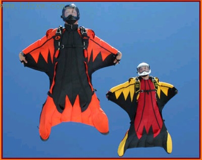 据英国《每日电讯报》1月1日报道,“飞行衣”是欧美极限运动者近年来最钟爱的“飞行器”,它由金属支架和高科技尼龙纤维组成,人穿上后展开双臂和双腿,看上去就像只蝙蝠,这样就可以在空中滑翔飘浮,不过在降落时通常仍需要打开降落伞。