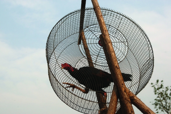 说起这只笼子,老张很得意。一个月前,他看到央视7套有个斗鸡节目,一个擅长斗鸡人说,他每天要花三四小时训练鸡的体能,用棒子不停地赶着鸡跑。这样训练斗鸡太费力了,老张看完节目,开始琢磨有没有更好的办法。到第3天,他做出了这只笼子,虫子挂在笼子外面,鸡关在笼里,为了能吃到虫子,就不停地在里面跑。“你看,不到一个月,这只斗鸡大腿上的肌肉明显多了”。 记 者 李建刚 摄影报道