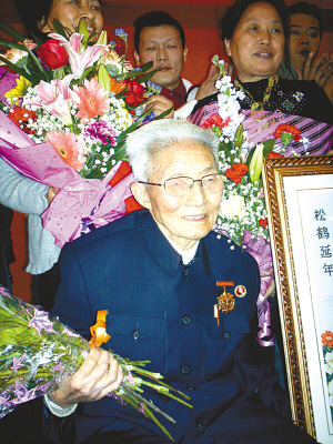 昨日,电影《血战台儿庄》中英雄连长的原型、素有“独目虎将”之称的抗日老英雄李宗岱,在渝中区沧白路某宾馆举办了一场简单的90岁生日宴。因老人拒收礼物,宾客们纷纷演唱《感恩的心》及原创歌曲《勇攀百岁福寿堂》等,为老人贺寿。
