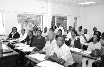 图为津巴布韦大学孔子学院汉语教学班的师生正在上课际文供图