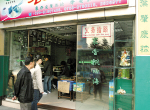 西门口粽子店,门口贴着“义务指路”