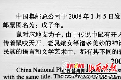 《戊子年》特种邮票首日封背面的错误处。本报记者刘江摄