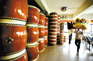 广州中娱鼓乐厂,这家传统国营厂全手工生产的“金声”牌狮鼓及狮头早在半世纪前已扬名海外。生产的鼓最小的只有巴掌大,最大的几个人才能合抱。高峰期一年卖出20万个狮头,2005年该厂被评为中华文化传承基地。