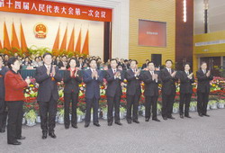 新当选的市人民政府市长谷春立充满激情地说,大会选举产生了新一届市政府领导班子,并再次选举我为鞍山市人民政府市长,这是全体代表和全市人民的高度信任。我将倍加珍惜这一服务鞍山、造福人民的难得机遇,不辱使命,恪尽职守。回顾过去的五年,振兴鞍山老工业基地迈出坚实步伐;展望未来五年,做好新一届政府工作任重道远。市十次党代会提出了“总量倍增、位次前移、追赶沈大、殷实和谐”的奋斗目标,本次人代会描绘了未来五年鞍山发展的宏伟蓝图,确定了2008年的主要任务。新一届政府将在市委的正确领导下,在市人大和市政协的监督支持下,带领全市人民,认真贯彻党的十七大精神,深入贯彻落实科学发展观,全面实现未来五年的宏伟目标。按照市委十届四次全会提出的“围绕一个核心、实现两个融入、推进三大任务”的总体要求,誓让鞍山老工业基地早日振兴。谷春立代表刚刚当选的政府各位领导同志向全市人民郑重承诺:我们所做的一切一定对得起党和组织,我们所做的一切一定对得起全体代表和350万鞍山人民,我们所做的一切一定经得起历史的检验,我们所做的一切一定经得起后人的评价。用实际行动履行职责,尽忠事业,振兴鞍山,回报人民!