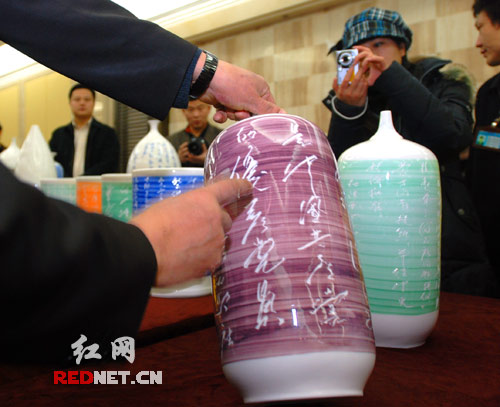 (李铁映刻字介绍李维汉革命一生的瓷瓶)