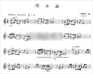 《思乡曲》是马思聪1937年所作《内蒙组曲》暨《绥远组曲》(作品9)中的第二首。慢板,以如歌如诉的旋律表现出远离家乡的人们对故乡的思念之情。乐曲的主题直接采用了内蒙古民歌《城墙上跑马》的旋律,旋律具有深情、缠绵、忧伤的情调。
