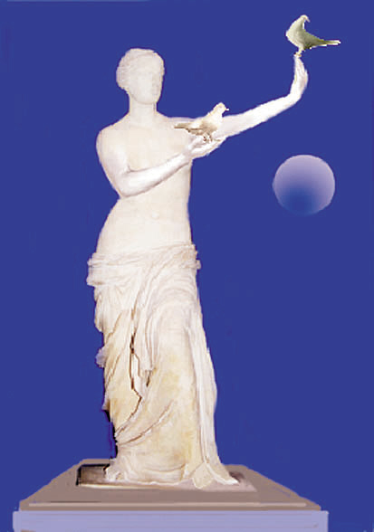 赵教授根据他多年的研究,结合断臂痕迹的人体解剖结构,利用“警星CCK-III人像摹拟组合系统”对维纳斯的断臂和残缺左脚趾进行了修复和复原。维纳斯断臂的复原图加了维纳斯“宝腰带”,寓意把美和爱、婚姻赐予人类。另外,赵教授在现实生活中找到了现代版的“维纳斯”——一名希腊少女。