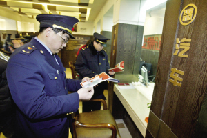 当天下午,海淀工商分局合同科执法人员来到位于中关村大街20号的“宝瑞通典当行”。当铺外面的招牌打着“宝瑞通典当行”,店里面牌子上提醒顾客,抵押时需要提供身份证等各种证明文件,一些宣传单上也是介绍宝瑞通典当行的典当业务。但该店却没有悬挂任何资质证明,执法人员要求该店出示相关资质时,员工拿出来却是宝瑞通寄卖行有限责任公司第十三分店的营业执照,典当许可证和特种行业许可证也都不是该店的。检查中,该店负责人一直没有出现。