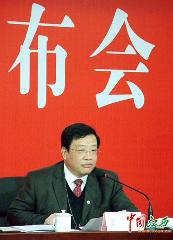 省外经贸厅厅长杨洪基介绍开放型经济发展情况。(中国江西新闻网记者 邓小勇 摄)
