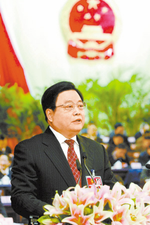 省长蒋巨峰代表省政府向大会作政府工作报告。报告共分四个部分:2007年经济社会发展情况及本届政府工作回顾;未来五年的奋斗目标和工作原则;2008年政府工作建议;政府自身建设。